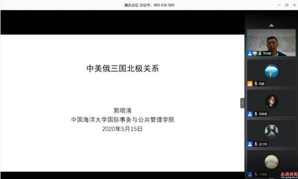 本网讯 人才培养不延迟,学术研究不放松。5月15日,一场以“中美俄三国北极关系”为主题的学术讲座通过“腾讯会议”网络平台开讲,邀请中国海洋大学国际事务公共管理学院、国际民间智库“国际极地与海洋门户”创始人、中俄北极论坛创始人郭培清教授担任主讲人。我校极地问题研究中心、空港经济协同创新研究中心、校科研创新团队、校研究所全体成员,各教学单位中青年骨干教师以及校极地与空港研究会学生等近百人入会学习。我校督学顾也力教授、副校长何艾兵教授出席会议现场。