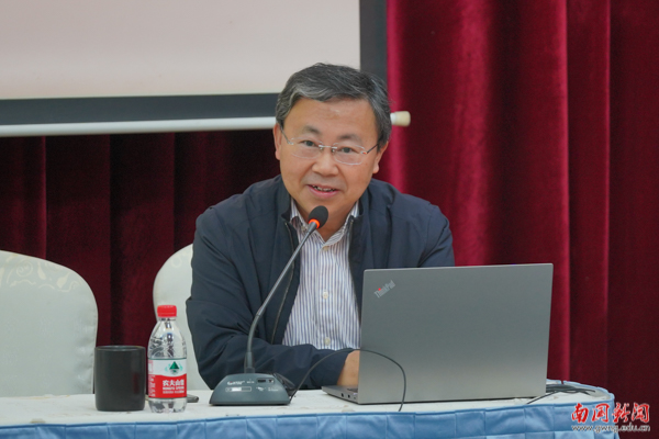 本网讯 12月14日下午,广东外语外贸大学新闻与传播学院院长、武汉大学新闻学博士侯迎忠教授作客博雅大讲坛,他以“国际传播的理念、形势与实践创新”为题,带领师生探索新时代的国际传播。副校长赵福春主持讲座。