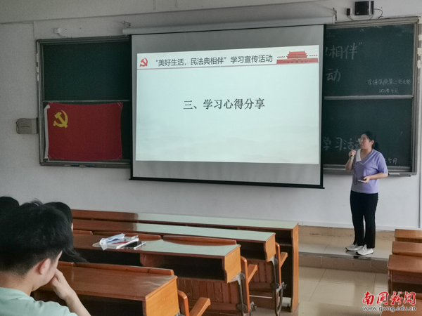 本网讯 为深入学习贯彻习近平总书记关于加强民法典学习宣传的重要指示精神,让《中华人民共和国民法典》这部“社会生活的百科全书”,走进群众身边、走进群众心里,5月26日下午,东方语言文化学院第二党支部开展“美好生活,民法典相伴”主题学习宣传会。东语学院第二党支部书记邱礼生、第二党支部全体成员、团委学生会及各班学生干部参加学习会。