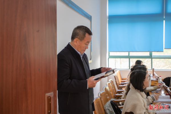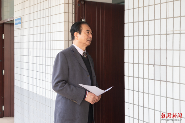 副校长何艾兵检查学生出勤情况(洪玉敬 摄)