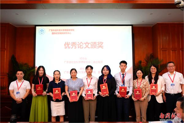 下午的论文研讨环节由7位优秀论文作者进行论文分享,他们分享的内容涵盖了全球国际经贸规则调整、RCEP框架下跨境数据流动、粤港澳大湾区港口经济高质量发展等多个热点议题。华南理工大学的李合龙教授和我校郑京淑教授,作为点评嘉宾对论文进行专业点评,为作者提供了宝贵的修改建议和未来研究方向的指引。