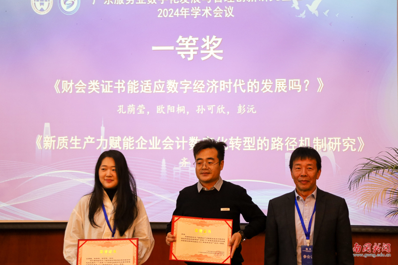 本次会议共收到高质量学术论文63篇,评审委员会经过严格评审,评出一等奖2篇,二等奖4篇,三等奖6篇。管理学院副院长、研究基地副主任文佑云教授宣读了论文表彰决定,与会领导与嘉宾为获奖论文作者颁发了荣誉证书。
