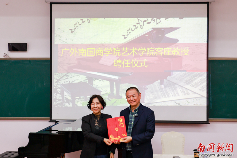 在现场全体师生的见证下,艺术学院院长李冬兰教授为辛笛教授颁发客座教授聘书。李院长表示,辛笛教授的加入将进一步推动学校音乐教育专业的学科建设,助力培养具有国际视野的应用型艺术人才。