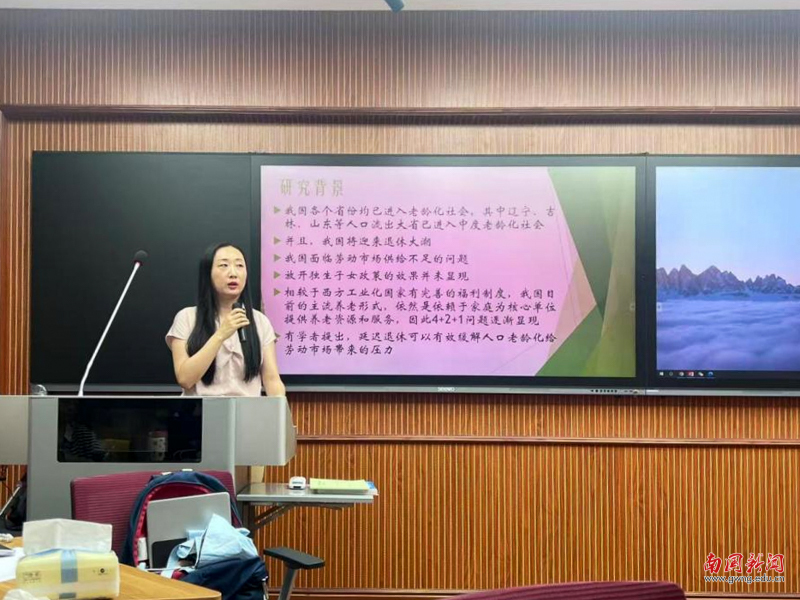 第三期沙龙由王雪莹博士主讲,她以“我国大龄人口延迟退休情况以及就业模式切换因素机制的调查研究”为题作主题分享。她指出随着我国 60 岁以上人口占比突破 20%,正式进入深度老龄化社会,未来十年将迎来史上最大规模 退休潮。尽管国家已实施三孩政策,但独生子女政策时期积累的低生育率效应持续显现,劳动力市场面临规模缩减与结构失衡的双重压力。在此背景下,延迟退休政策被视为缓解人口老龄化对劳动力市场冲击的重要路径,而大龄人口在延迟退休过程中面临的就业模式切换问题,成为学术界和政策层共同关注的焦点。