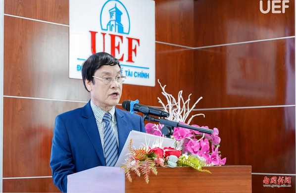 会议伊始,胡志明市财经大学校董事会杜国英副主席率先向我校陈林汉副校长致意,对与会嘉宾、老师与学生表示欢迎。他对胡志明市财经大学的基本情况做了介绍,强调在中越建交75周年之际,两校的签约具有非凡的意义。他希望通过两校合作,能够给双方院校的教师带来互相学习与交流的机会,为学生们带来更多良好的体验,进一步培养两国美好情谊。