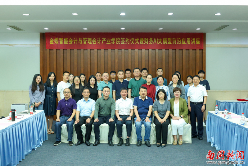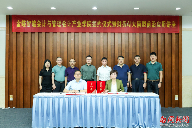 本网讯 5月9日上午,管理学院与金蝶精一信息科技服务有限公司(以下简称“金蝶精一”)在C202会议室举行了金蝶智能会计与管理会计产业学院签约仪式暨财务AI大模型前沿应用讲座,标志着双方在智能财务领域的深度合作正式启动。