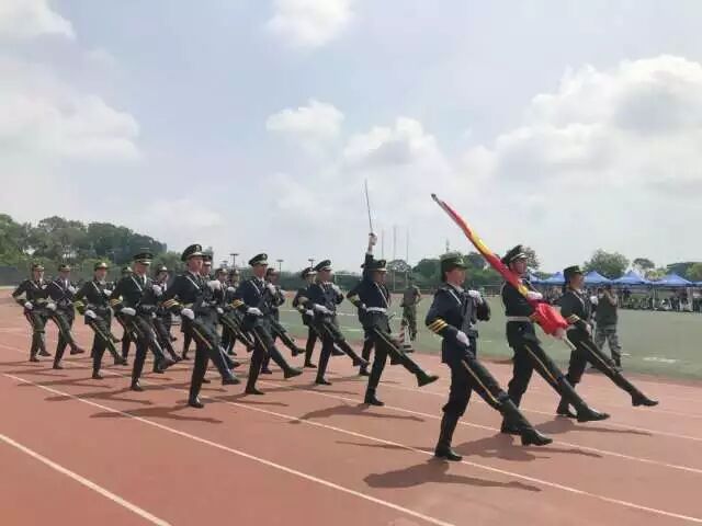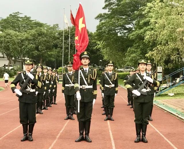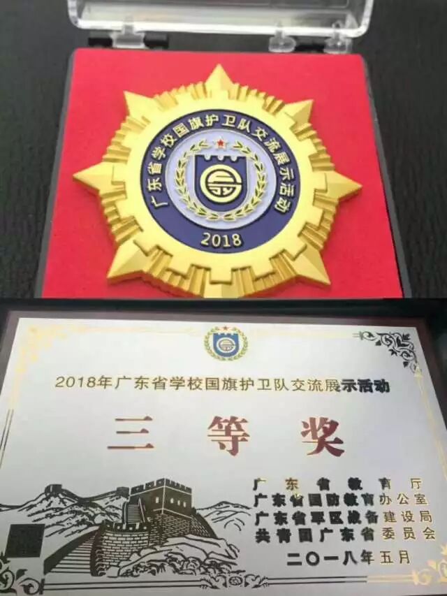 为深入贯彻落实党的十九大关于加强全民国防教育的决策部署,开展“传承红色基因,坚定理想信念”主题教育活动,展示我省学生军训成果和高校国旗护卫队风采,推广以国旗文化为主题的国防教育活动,激发广大青年学生的爱国热情,由广东省教育厅、广东省国防教育办公室、广东省军区战备建设局、共青团广东省委员会主办,由广东医科大学、广东省国防教育学会承办的 2018年广东省学校国旗护卫队交流展示活动于广东医科大学东莞校区举办。我校派出了精明干练的国旗护卫队参加此次交流展示活动。
