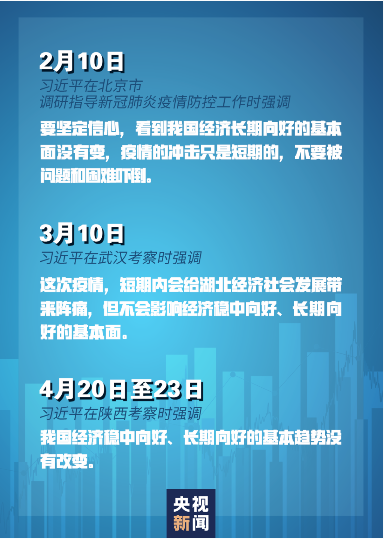 2月23日,习近平在统筹推进新冠肺炎疫情防控和经济社会发展工作部署会议上指出,我国经济长期向好的基本面没有改变,疫情的冲击是短期的、总体上是可控的。![]()