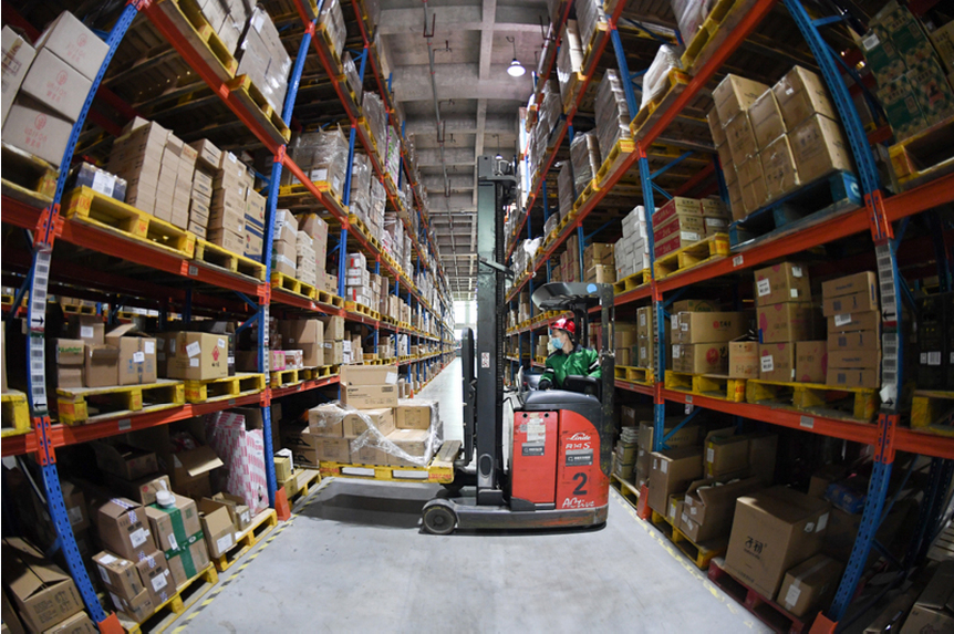 在北京市顺义区菜鸟物流仓库,一名工作人员在摆放货物。一季度,网上会议、线上交易、在线教育等促进信息传输、软件和信息技术服务业增加值同比增长13.2%;实物商品网上零售额同比增长5.9%。![]()