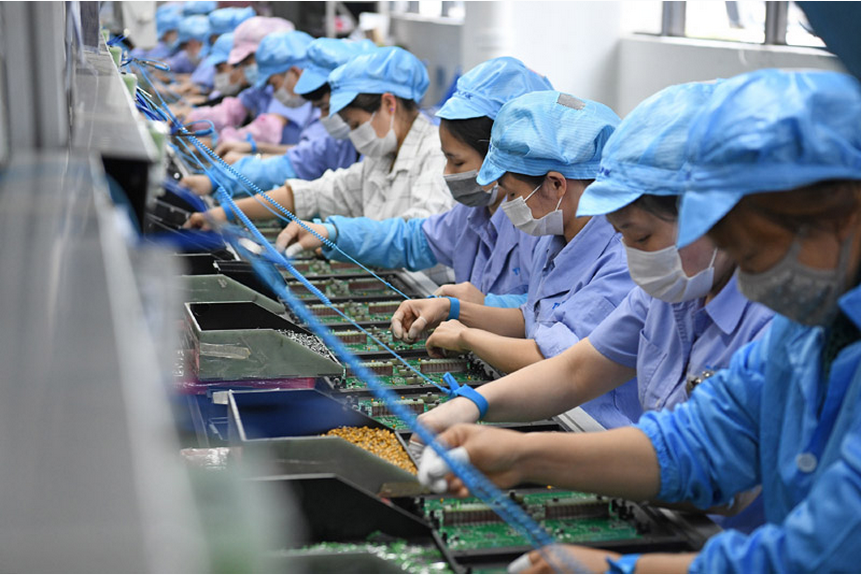 工人在深圳光明区普联技术有限公司出口产品生产车间作业。3月份,工业产出规模接近去年同期水平;全国货运周转量和客运周转量同比增速比上月分别加快9.9和14.3个百分点;全国城镇调查失业率环比下降0.3个百分点至5.9%。