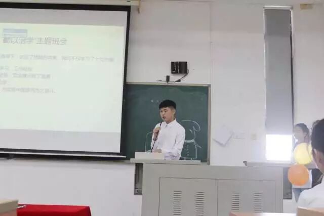 2.“静以修身,勤以治学”主题班会。学习十九大精神、两会精神,学习了同学们优秀的学习、工作经验。提高了班集体的学风、思想觉悟、安全意识,树立理想信念与目标,为实现中国梦而奋斗。