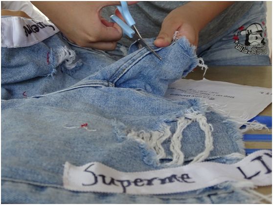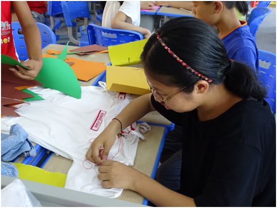 而美金老师的时装秀也十分精彩,孩子们“各领风骚”,充分利用自己的想象力裁剪出独具特色的衣服。