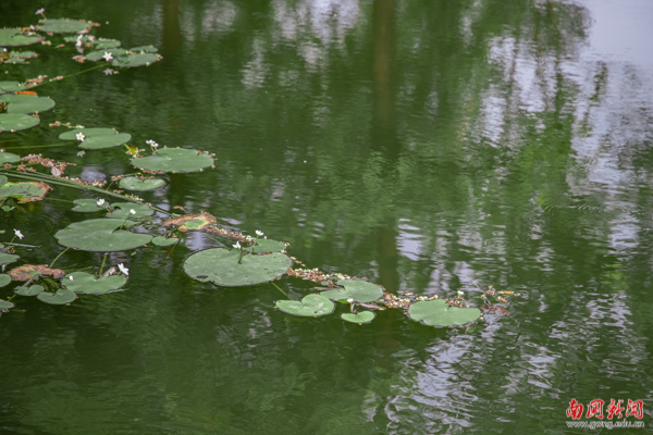 但在实验楼南侧,有这么一洼废弃水塘,原本是用于大楼雨水排放,但因长期积水加上枯枝落叶沉积,导致藻类及各种浮游生物繁殖引发污染。天气炎热时水色发黑,蚊虫飞舞,时有臭味飘出,师生都唯恐避之不及。