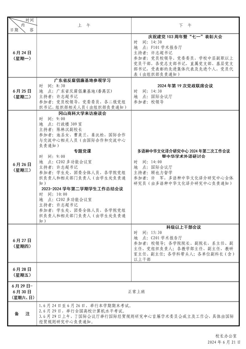 第18周会议和活动安排表