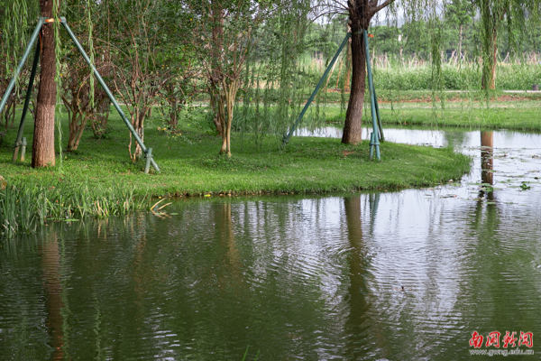 在教育技术中心师生团队的精心培育下,鱼蚌养水,改善水域生态环境取得了喜人的效果。水质一天天变清,空气逐渐清爽,来实验楼学习的学生不断增多。目前,实验大楼水塘在绿树掩映下,散发着勃勃生机。清晨,花坛边、水塘边都有许多学生晨读的身影;初夜,倒映在水面的灯光、学生学习的倩影与水塘的生物奏响了人与自然和谐相处的生态赞歌。