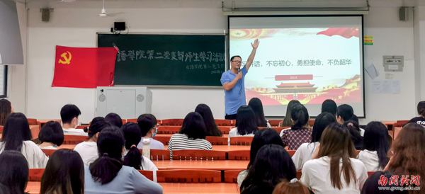 本网讯 5月16日,东语学院第二党支部在F105教室开展了“坚持党的领导,传承红色基因”主题党日活动。学院党总支书记、支部全体党员、发展对象和入党积极分子参加活动。