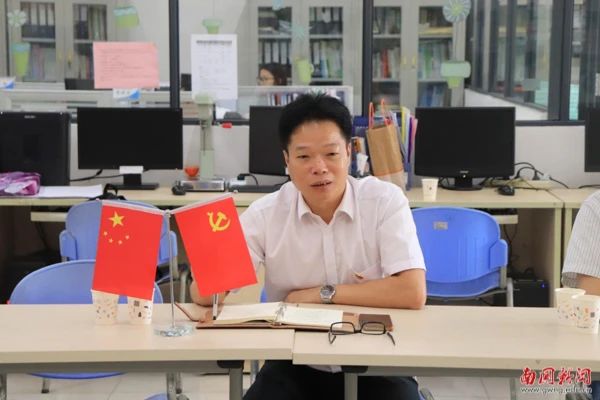冯钿对中文学院和新媒学院的党员发展情况及学院特色党建品牌进行汇报。他在汇报中指出,在学校党委带领下,中文学院开展党建品牌“君子六绎”、考研工作坊、“师生共进”学业辅导栏目以及“路,我是这样走的”朋辈系列分享等活动。新媒学院开展了“00后说”微视频栏目、考研工作坊、广东红系列党史推文宣传等活动,两个学院在打造特色品牌建设中,注重促进学院人才培养质量同步提升,做到了党建与业务工作相融合相促进,也使得师生党员同志们在实践中不断践行为人民服务宗旨,有效淬炼党性修养。