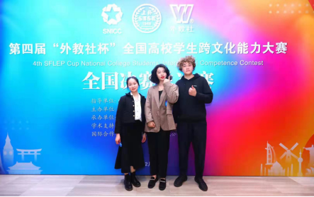 外教社杯全国高校学生跨文化能力大赛由上海外国语大学主办,上海外语教育出版社协办,以“坚定文化自信,增进国际理解”为主题,旨在服务国家战略和外语能力建设,通过以赛促学、以赛促教的方式,促进高校师生提升跨文化能力,培养具有中国情怀和国际视野的国际化人才。我校由胡嘉欣、王佳和何泳希三位同学组成的参赛队伍在广东省的比赛中以一等奖的好成绩冲入全国决赛,全国决赛共有来自复旦大学、北京语言大学、湖南师范大学等30支队伍参加。在比赛中,我校三位同学以《留学是最好的爱国主义教育》为主题进行跨文化案例的展示与分析,并顺利完成了评委提问和名言名句解析等两个环节,获得全国决赛三等奖。
