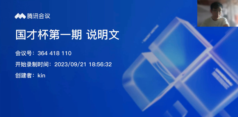 2023年9月20日晚,大学英语教学部何梓健老师通过腾讯会议,以外研社·国才杯·理解当代中国为主题的线上写作比赛说明文讲授在2020级到2023级创新班学生中展开。这次授课旨在为参赛者提供深入了解和掌握概念说明文与图表说明文的技巧,以及如何运用客观性写作方法。
