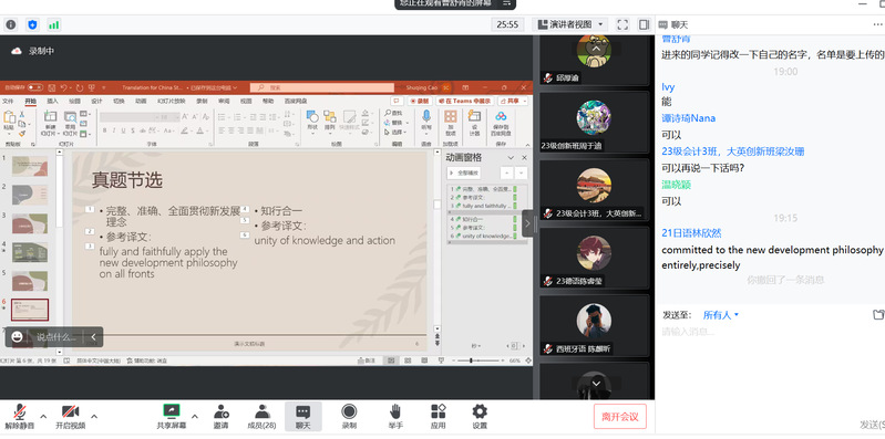这次线上讲座为同学们提供了宝贵的笔译技巧和深入了解当代中国的机会,同学们具备了参加”理解当代中国“笔译比赛的能力,同时也增强了翻译技能,在未来的学业生涯中受益匪浅。
