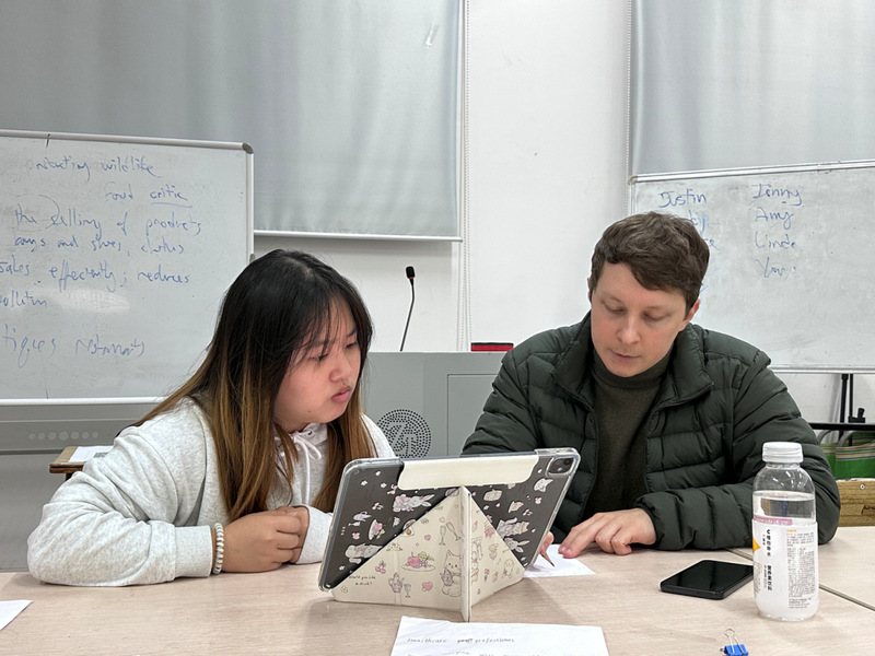 外教口语一对一的活动以其独特的交流方式和丰富的话题内容,为同学们提供过了一个展示自我、提升英语口语能力的平台。通过与老师的互动,同学们不仅学到了语言知识,更在跨文化交流中增长了见识。(供图:CEO新媒体部 谭诗湄)