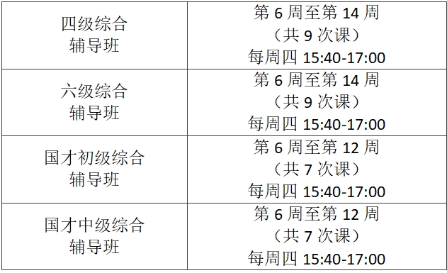 为帮助同学们高效备考,顺利通过大学英语考试和国才考试,大学英语教学部拟举办系列综合辅导班,针对大学英语四、六级考试与国才初级、中级考试题型,分析例题,突出重点,解释难点,传授方法,分模块培养和提高学生的英语素养与应试技巧。
