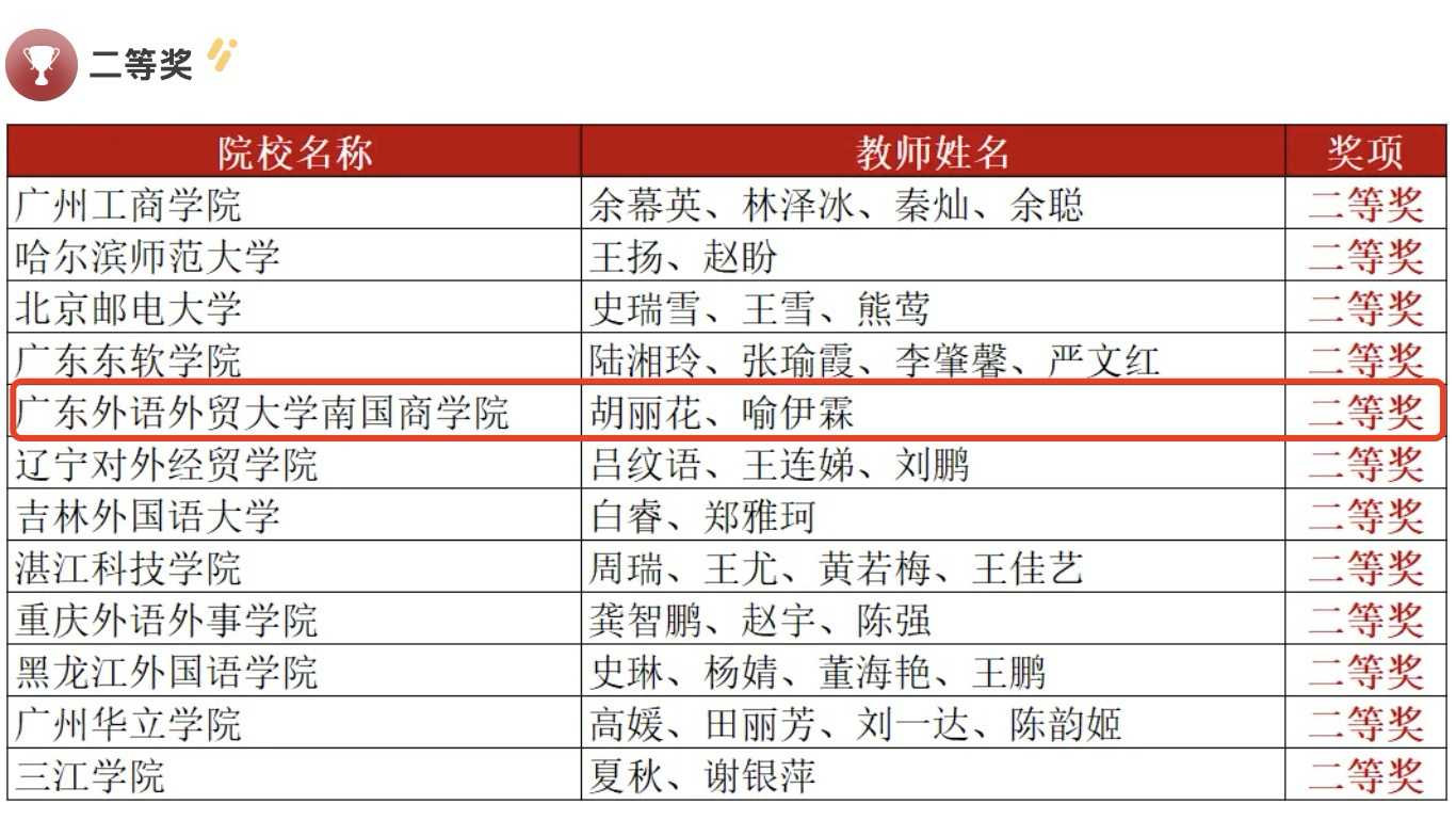 此次获奖,不仅是对我校教师教学设计与思政融合能力的高度肯定,也为学校日语学科的教学质量提升与课程思政建设注入了新的动力。东语学院日语系将以此为契机,继续深化日语课程教学改革,加强课程思政教育的研究与实践,为培养具有国际视野和家国情怀的复合型人才贡献力量。(尹国鹏 胡丽花)