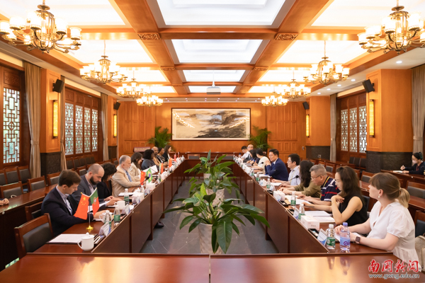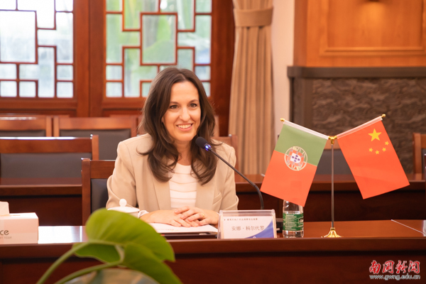 Mr. Wang Mingyu delivered a welcoming speech. On behalf of SCBC, he extended a warm welcome to the delegation and gave an introduction to SCBC, including its schools and faculties, the disciplines and programs, and in particular, its education philosophy characterized by the “three features integrated together”(of internationalization, foreign language education, major+ and practice-orientation) and “three fronts going in harmony”(of integration of liberal arts and sciences, translation between cultures, and mutual appreciation of civilization). According to Wang, SCBC started to offer Portuguese program in 2016, and students of the program since then have won many awards in various competitions. At present, SCBC has established cooperation and exchange relations with more than 60 institutions of higher education and research institutions in 17 countries, including two universities in Portugal -- New University of Lisbon and the University of Aveiro. He hopes to establish in-depth cooperation with more universities in Portuguese-speaking countries in the future.