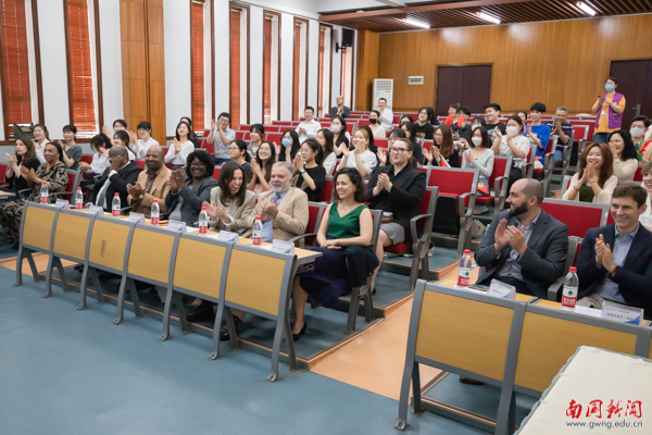 On May 5, Anna Cordero, consul general of Portugal in Guangzhou, Frederico Meyer, consul general of Brazil in Guangzhou, and Jutit Albino da Costa, consul general of Angola in Guangzhou, visited SCBC and celebrated World Portuguese Language Day with students and teachers. The guests were received by Vice President Wang Mingyu and heads of the Center for International Cooperation and Exchange and the School of European Languages and Cultures at the International Conference Hall.