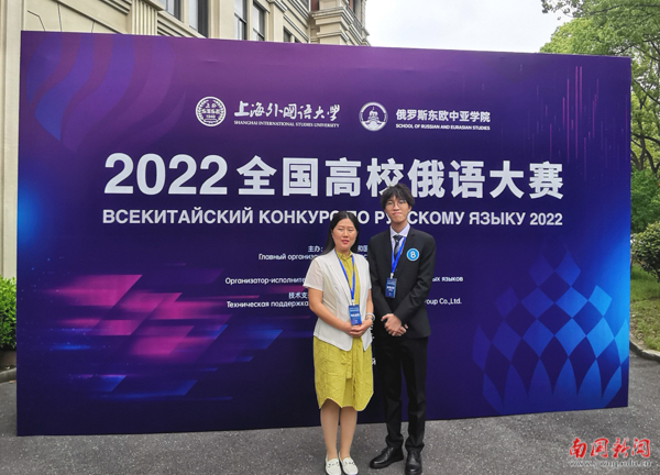On the morning of May 6, the 15th National Collegiate Russian Language Contest kicked off at the Songjiang Campus of Shanghai International Studies University. Wu Haotian, a senior of Russian language (supervised by Yan Qiuju), ranked sixth and won a second prize in the junior and senior group, thanks to his solid basic skills, calmness, and flexibility. In the proposition speech session, Wu's performance of speech “Far and Near” scored the highest among all the contestants. This result has earned him a place in the national program for post-graduate studies in overseas countries funded by the China Scholarship Council.