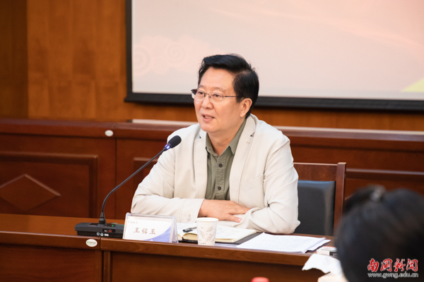 王铭玉对近年来各学院学科建设工作及成效给予肯定,结合《研究生教育学科专业目录(2022年)》变化情况和学科建设有关问题同与会人员进行了交流,针对不同学科建设发展给出了指导意见及具体建议,并就下一步学科层次提升、学科方向凝练等有关工作提出了具体要求:一是立德树人是教育的根本任务,要全面贯彻党的教育方针,把立德树人融入教育培养和学科建设的全过程,积极产出有影响力的人才培养品牌和科学研究成果;二是要明确学院的学科建设主体责任,树牢学科建设意识,并充分发挥好学科带头人的引领作用;三是科学规划和建设我校的三类学科:“荣誉学科”“攻关学科”“基础学科”,在“三色”上下功夫:绘好“国际化底色”,彰显“外国语特色”,增添“复合+实践亮色”;四是回应国家重大战略需求,秉持“文理相融、文化互译、文明互鉴”的使命,以目标为导向推进学科交叉融合,凝练学科方向,真正做到“人无我有,人有我优,人优我特”;五是要建设一流学科,必须抓核心竞争力,在学科架构、学科方向、学科队伍、学科平台、学科成果、学科资源上持续充分发力。