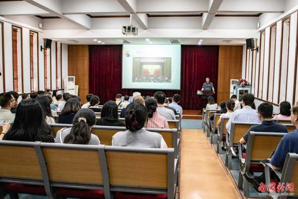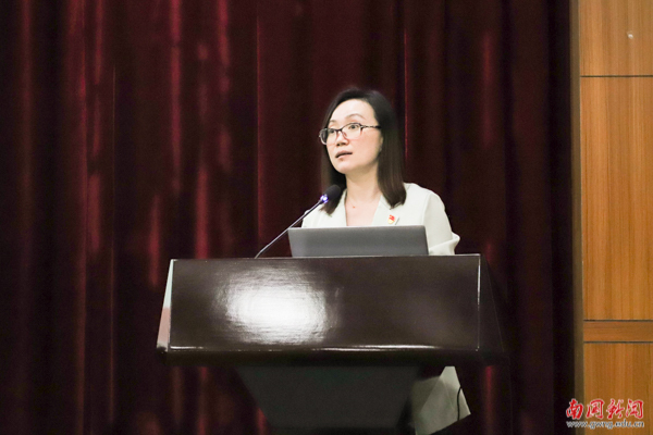 颁奖仪式结束后,西方语言文化学院党总支书记高彩云同志从教育机构如何做好新闻宣传、新闻传播规律、6种西方意识形态在高校的渗透形式、高校应对舆情的正确处置方案等方面汇报了在广东省意识形态工作培训中的学习收获。