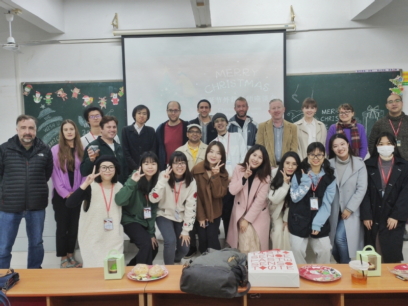在西方传统节日圣诞节前夕及2022年来临之际,学校于2021年12月23日在F303举行了外籍教师圣诞节新年座谈会,向全体外籍教师送上诚挚的节日问候和精心准备的礼物,并与外籍教师进行了友好深入的交流。学校全体外籍教师、国际合作与交流中心全体工作人员及下属学生组织国际交流志愿者协会的部分同学参加了此次座谈会。