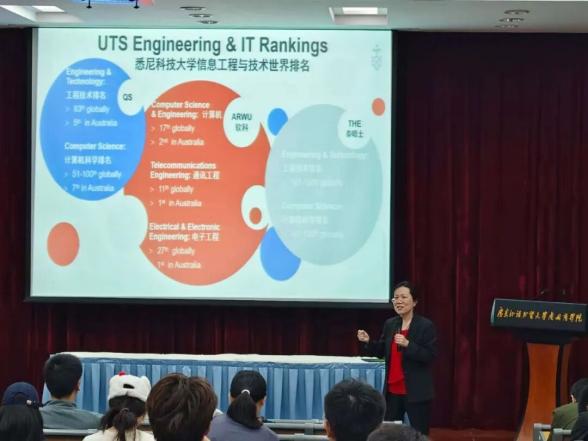 此外,霍老师以“科技赋能未来”为主题,向计算机方向的同学介绍了UTS工程与技术学院的学科设置,并重点强调了计算机科学、人工智能、电子工程等优势专业,让同学们清晰看到该学院的人才培养质量与发展前景。