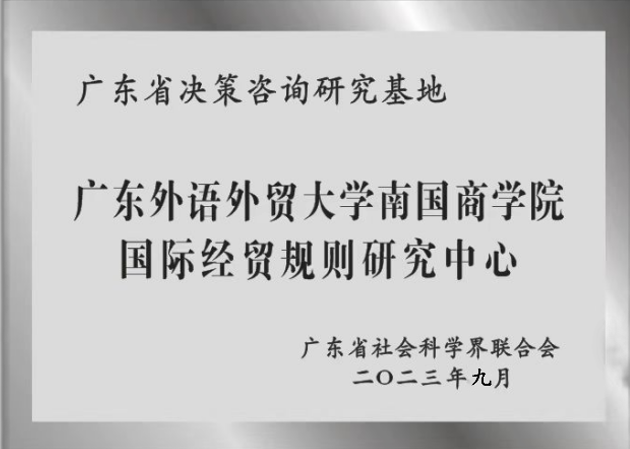 国际经贸规则研究中心是依托广东外语外贸大学南国商学院“国际经贸规则与标准研究基地”和经济学院,于20239月,经广东省社会科学联合会批准设立的广东省决策咨询研究基地。“国际经贸规则与标准研究基地”成立于20196月,致力于凝聚国内政产学研用各方面专业力量,共同研究国际经贸规则与标准,是中国国际贸易促进委员会商业行业委员会授予的全国首批研究基地,广东外语外贸大学南国商学院也是广东省唯一获此殊荣的民办高校。经济学院是南国商学院办学时间最长的学院之一,积淀了深厚的学科专业底蕴,主要培养具有数字思维与数字应用能力、国际化视野与较强外语能力、复合型、创新型、应用型经济类人才,现设有国际经济与贸易、金融学、经济学、税收学、投资学、电子商务等本科专业。学院现有国际经济与贸易学省级特色重点学科、金融学校级重点学科,国际经济与贸易专业省级一流专业建设点,“国际商务”和“金融”两个校级专业硕士学位建设点。近年来,中心取得丰富的研究成果。一是提交7份决策咨政报告,其中2份获广东省省委相关部门批示,4份被采纳;二是出版学术专著1本;三是发表论文12篇,其中核心期刊发表论文9篇;四是获批市厅级项目6项,横向项目1项。