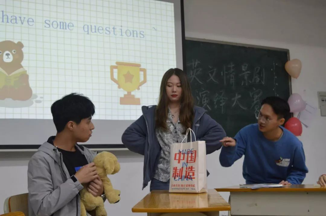 为营造良好的学习英语的氛围,国际学院与教育学院于11月28日在F303联合举办了英语情景剧比赛。参加决赛的有五支队伍,他们都是从此前的初赛中脱颖而出获得决赛资格的。经过激烈的角逐,本次比赛决出了1名一等奖,2名二等奖和2名三等奖。