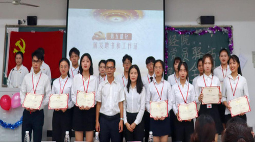 大会第五项,指导老师刘江奎老师以及上一届的师姐们为新上任的会长及部长们颁发聘书及工作证,希望各位部长级可以带领干事们创造新的辉煌。部长们也为新干事们颁发工作证,表示会共同努力打造特色部门。黄力龙和刘欣奥作为新干事代表,也在此次大会上进行精彩的发言,发表自己对加入党员驿站的感想并表达了自己对党员驿站的美好祝愿。