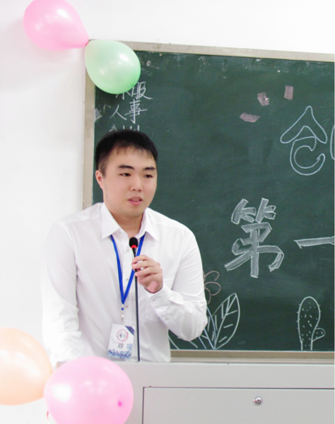 紧接着,指导团团长吕俊杭上台发言,分享他在学会三年来的收获,他的发言围绕着入会初衷、新干事工作职责两方面进行,同时,他鼓励新干事尝试去挑战自我、提升自我。