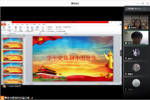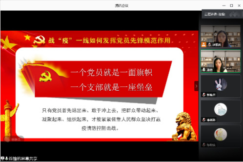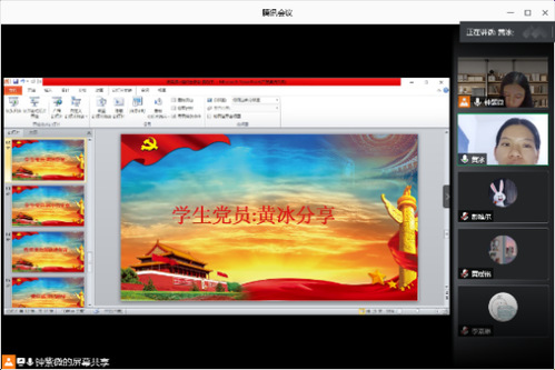 学习完抗疫视频后,会议进入到学生党员分享环节。黄冰同志分享了一线抗疫的“00后”大学生志愿者张玉欣在此次新冠肺炎疫情中用大无畏的精神站在武汉一线抗疫地区为居民买药送药的故事,她认为这一执着坚韧的气质是当代大学生一种优良的品质,并值得我们学习。而林小力同志分享的是一个在他身边发生的关于战役的感人事迹--雷州市南兴镇党委委员黄康忠同志在疫情期间逆行而上,吃苦耐劳奋斗在疫情防控阻击战的第一线,直到生命最后一刻。林小力同志认为黄康忠同志用自己的实践彰显了疫情期间党员冲锋在前的精神,我们广大党员应该向他学习。