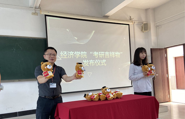 会议首先进行经济学院“考研吉祥物”发布仪式。副院长王继洲和“研宝宝”创作者陈婧钰同学共同为考研吉祥物揭幕。