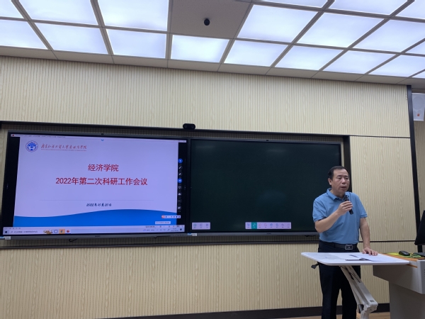 本网讯 在党的二十大隆重召开之际,经济学院于10月20日举行2022年第二次科研工作会议,经济学院全体教职工参会,副校长赵福春、科研处处长吴新玲出席会议,会议分为上下半场,上半场由副院长王继洲主持,下半场由副院长高洁主持。