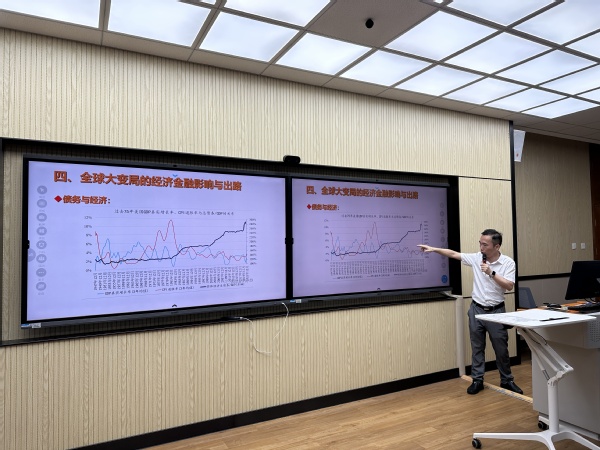 本网讯 6月8日,经济学院邀请中山大学管理学院彭方平教授在G302开展“南国经济大讲堂”第13期讲座,主题为“全球大变局下宏观经济金融形势”。讲座由经济学院副院长王继洲主持,学院全院教师参加。