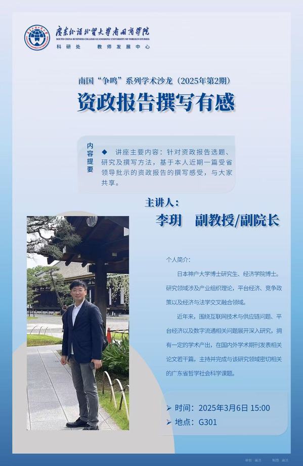此次讲座有助于提升师生在资政报告撰写方面的能力,推动学院在服务社会经济发展方面迈出更坚实的步伐。未来,经济学院将继续开展此类学术交流活动,助力学院整体发展。(图、文:李健莹)