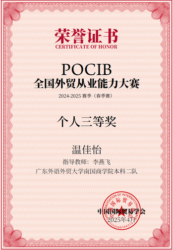 【喜讯】我院学子在POCIB全国外贸从业能力大赛2024-2025 赛季(春季赛)中荣获佳绩!