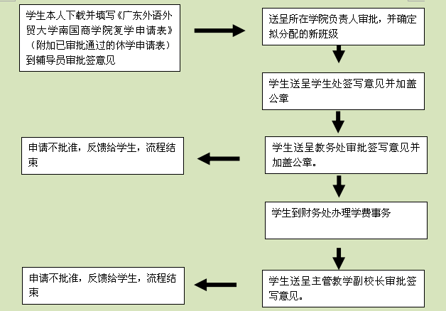 (2) 学生把填写好的复学申请表(附加已审批通过的休学申请表)交由辅导员审批签写意见;