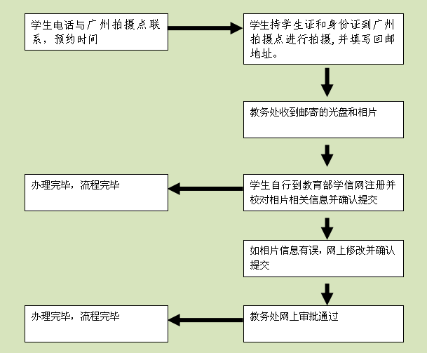 (2)如学生因事不能按时拍摄的,可以持学生证和身份证自行到广州指定的地点进行拍摄。