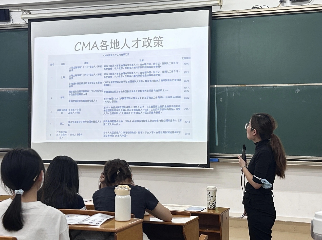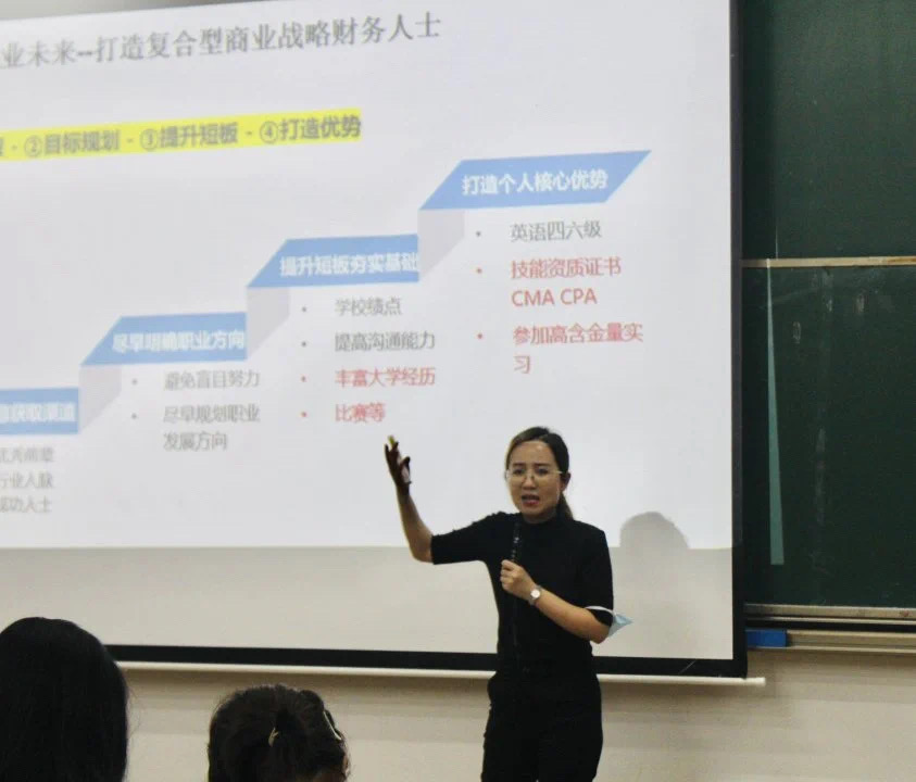 3、讲座接近尾声 Lisa老师为在座财务专业的同学提出了职业发展建议:
