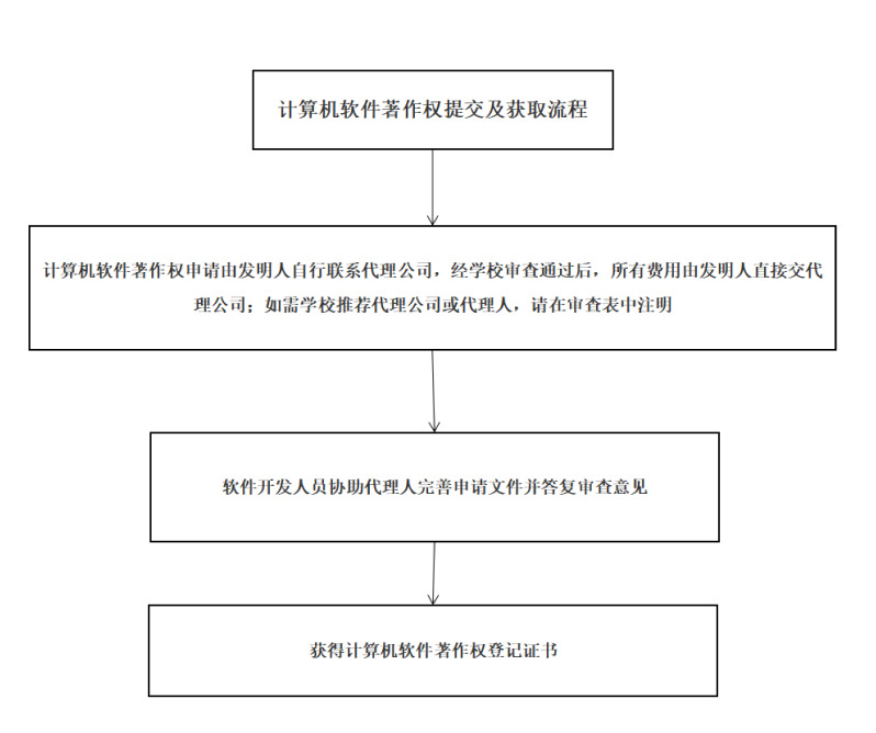 第一步:计算机软件著作权申请由发明人自行联系代理公司,经学校审查通过后,所有费用由发明人直接交代理公司;如需学校推荐代理公司或代理人,请在审查表中注明;