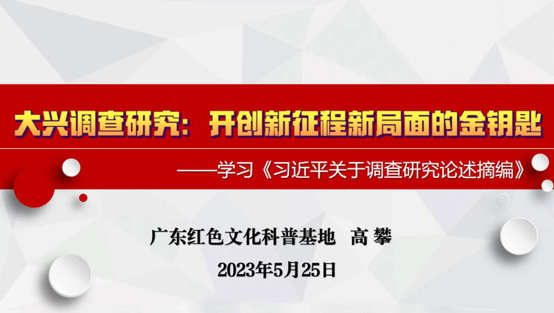 高攀以时间为轴,系统讲解了三代国家领导人在调查研究工作上的风格特点。通过梳理中共百年党史脉络,引领大家看到通过深入基层调研,理论结合实践,对于引导中国人民在革命、建设、改革的过程实现历史性突破产生的积极影响力。高攀从世情、国情、党情、民情四个维度出发,分析了各个维度当前面临的风险挑战,从逻辑层面解读了大兴调查研究的四大现实需要和六大功能。