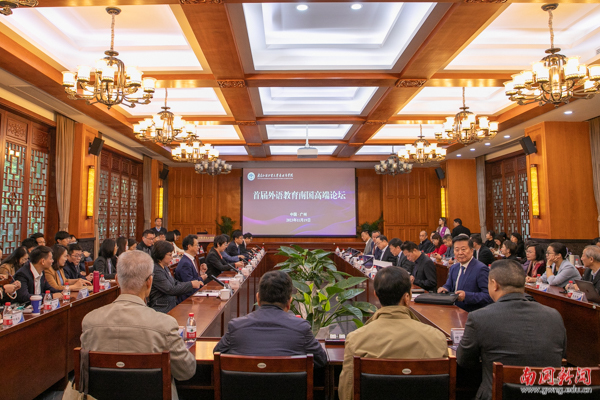 11月19日上午,由广东外语外贸大学南国商学院组织发起的“首届外语教育南国高端论坛”在我校国际会议厅盛大召开。论坛特邀国内六所著名高校校长、副校长,结合新形势下国家战略需求与高校外语人才培养定位,深入交流高校外语教育改革发展的新使命与新方向,为外语教育教学及学科专业建设把脉。执行校长王华教授出席论坛并致辞,副校长王铭玉教授结合我校外语教育发展情况作报告。董事长丁小军先生,党委书记许志超同志,副校长赵福春教授,各学院院长、学科带头人、专业负责人及院系骨干教师80余人参加论坛。论坛由督学顾也力教授主持。